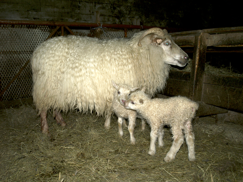 Við nánari skoðun kom í ljós að sú gamla var komin að burði, og lömbin létu ekki á sér standa, heldur mættu í heiminn í aðfaranótt 25. október.