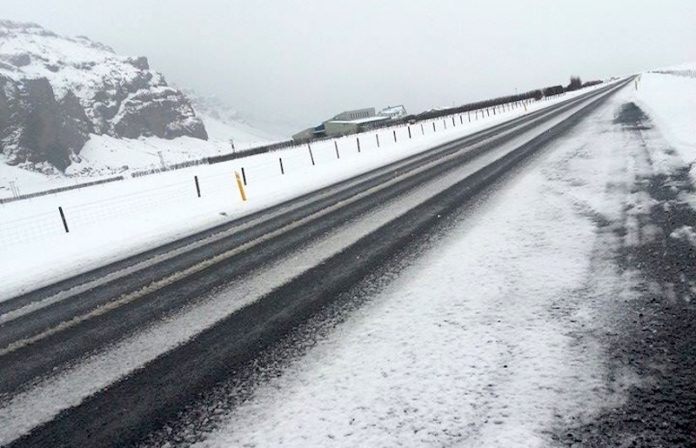 Lögreglan á Hvolsvelli beinir því til ökumanna sem eru á ferð um Suðurland að fara varlega, en talsverður krapi er á vegum og von á frekari snjókomu.
