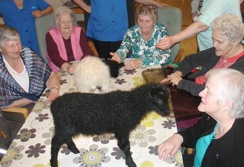 Þar er mikið lagt upp úr dýrahaldi og starfsfólk segir augljóst að heimilisfólk hafi gaman af, enda margir hverjir fyrrum bændur.