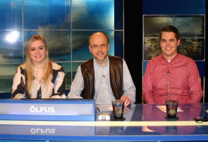 Lið Ölfuss í kvöld skipuðu þau Ingibjörg Hjörleifsdóttir og feðgarnir Hannes Stefánsson og Stefán Hannesson.