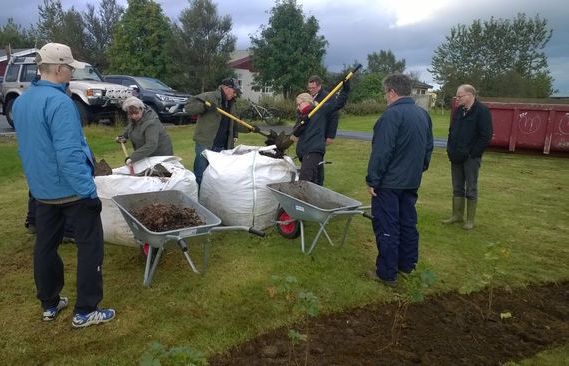 Félagar í Rótarýklúbbi Selfoss góðursettu í vikunni rifs- og sólberjarunna á opnu svæði sunnan við Sílatjörn á Selfossi.