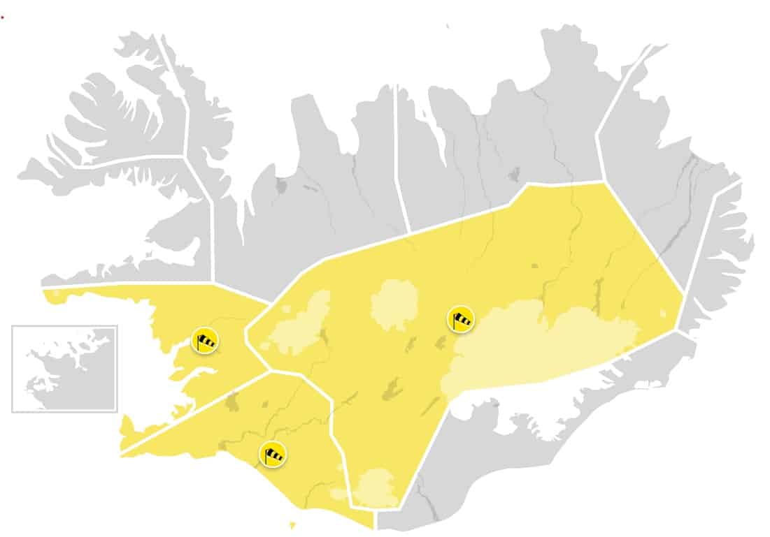 Í dag er gul viðvörun í gildi á Suður- og Suðausturlandi til klukkan 7 í fyrramálið.
