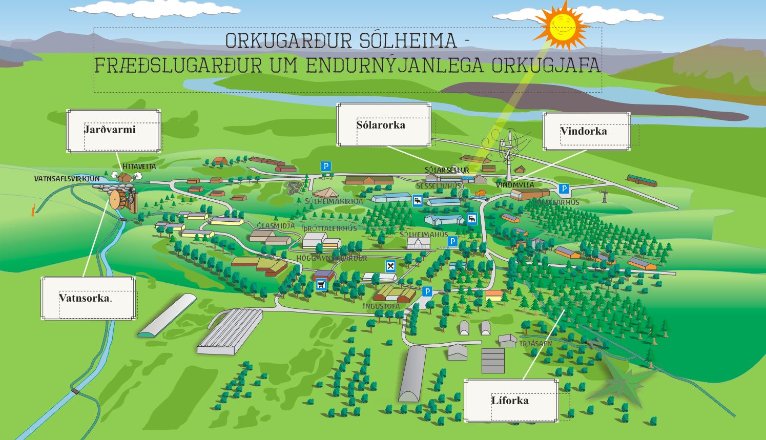 3. jarðvarma: Sólheimar hafa sína eigin smáhitaveitu sem áætlað er að sýni nýtingu jarðvarma.