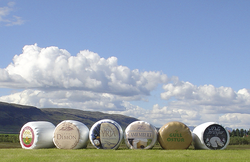 „Þetta hefur vakið mikla athygli og er ágætis hraðahindrun því margir ökumenn hægja á sér til að skoða ostana. Þetta er skemmtileg tenging að setja þetta á heyrúllur því þar er verið að vitna til þess að fóðrið er upphafið að ostagerðinni. Osturinn er okkar afurð og auðvitað auglýsum við það,“ sagði Rúnar.