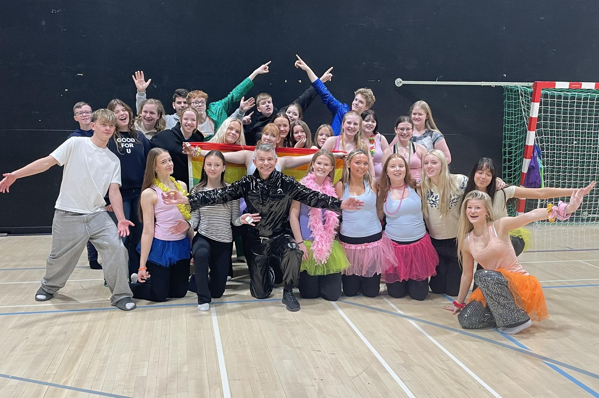 Listamaðurinn Páll Óskar var fenginn til að koma óvænt á svið í íþróttahúsi Vallaskóla á Selfossi á jólasamveru í gær.