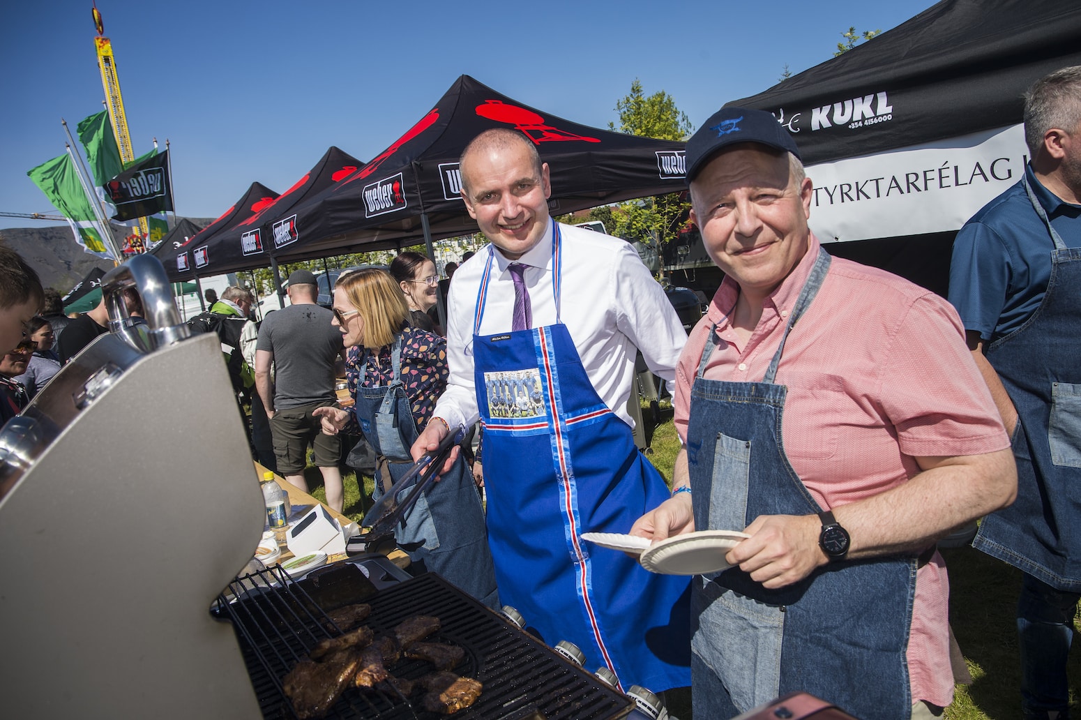 Sigurður Ingi Jóhannsson samgönguráðherra og Bjarni Benediktsson fjármálaráðherra verða sérstakir aðstoðargrillarar ásamt Þorgerði Katrínu Gunnarsdóttur og Oddnýju Harðardóttur, Guðna Ágústssyni og BBQ kónginum.