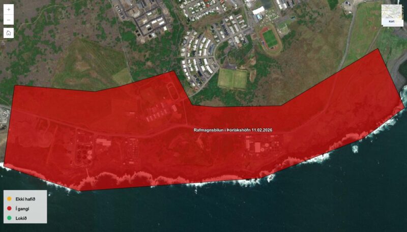 Rafmagnslaust varð í hluta Þorlákshafnar um kl. 13:48 í dag, á iðnaðarsvæðinu við Nesbraut og Laxabraut.