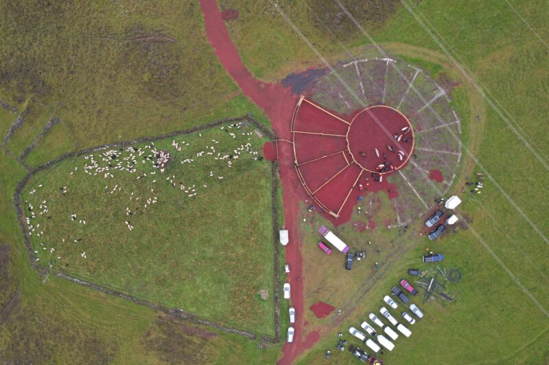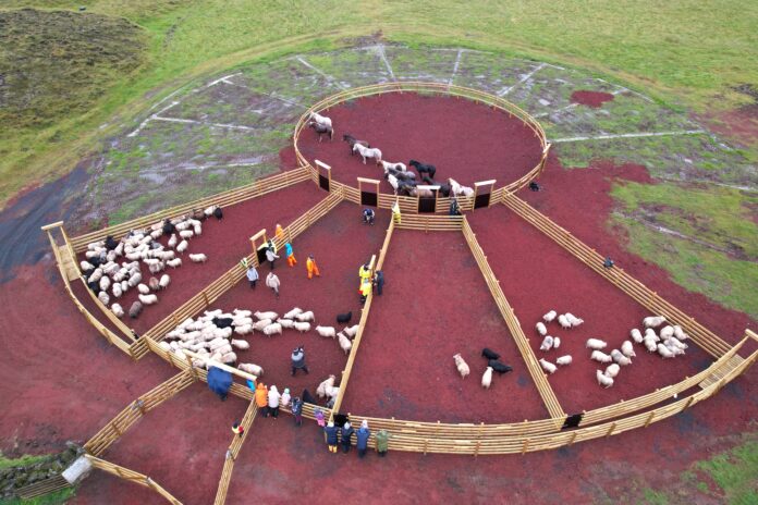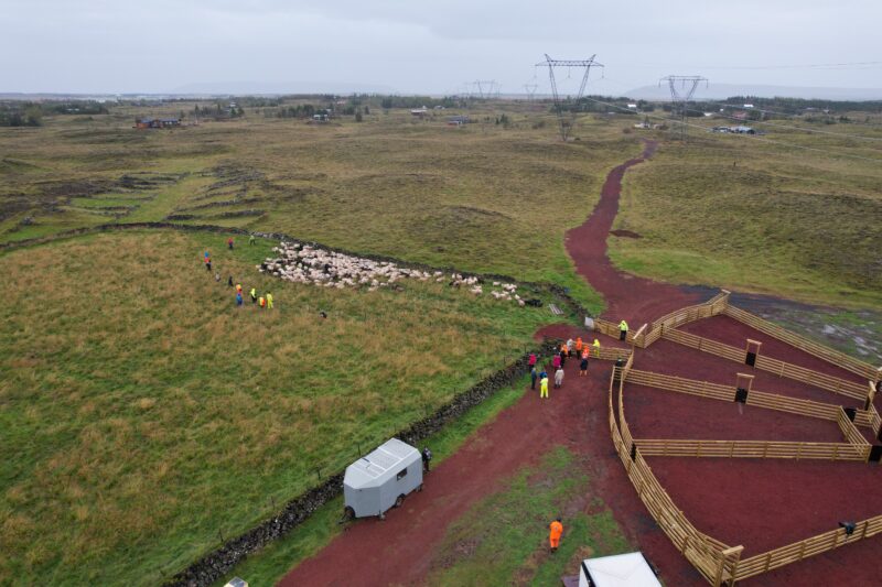 Framkvæmdin þykir einstaklega vel heppnuð, en það voru votir en kátir smalar sem smöluðu í fyrsta skipti inn í réttina eftir smalamennsku helgarinnar.