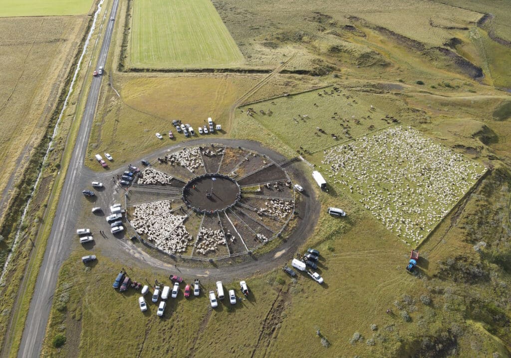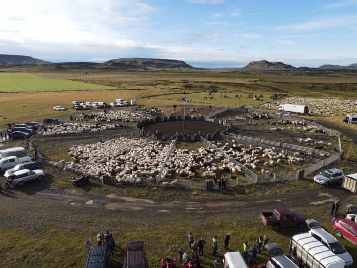 Veðrið lék við alla þurrt veður og skýjað og 15 stiga hiti og sömuleiðis viðraði ágætlega á fjallmenn í vikunni og vel gekk að smala af fjalli en fjársafn Hrunamanna telur rúmlega 3.800 ær frá fjórtán bæjum.