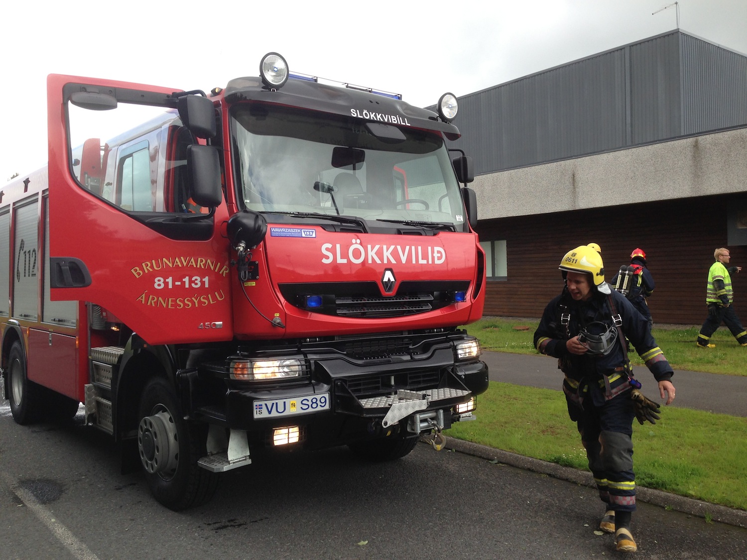 Reykkafarar fóru inn í húsið en talsverður reykur barst frá tölvustofu í vestari hluta hússins. Á þessari stundu er ekki ljóst hvort eldur hafi verið laus í húsinu en talsverður reykur stóð út um útihurðir og vinna slökkviliðsmenn nú að því að reykræsta húsið.