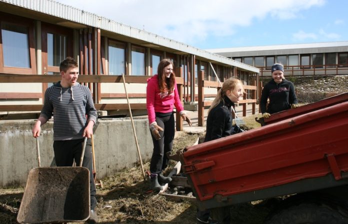 Ungir félagar í hestamannafélaginu Sindra í Vík tóku sig til um síðustu helgi og hreinsuðu í kringum dvalarheimilið Hjallatún í Vík.