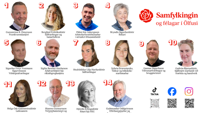 Oddviti listans er Gunnsteinn R. Ómarsson sem var bæjarstjóri í Ölfusi á árunum 2013 til 2018. Gunnsteinn er þó ekki mættur til leiks til þess að verða bæjarstjóri á ný því framboðið hefur gert samkomulag við bæjarstjóraefni utan listans, sem verður kynntur til leiks þegar nær dregur kosningum. Í tilkynningu frá framboðinu segir að um sé að ræða reynslumikla manneskju í sveitarstjórnarmálum.