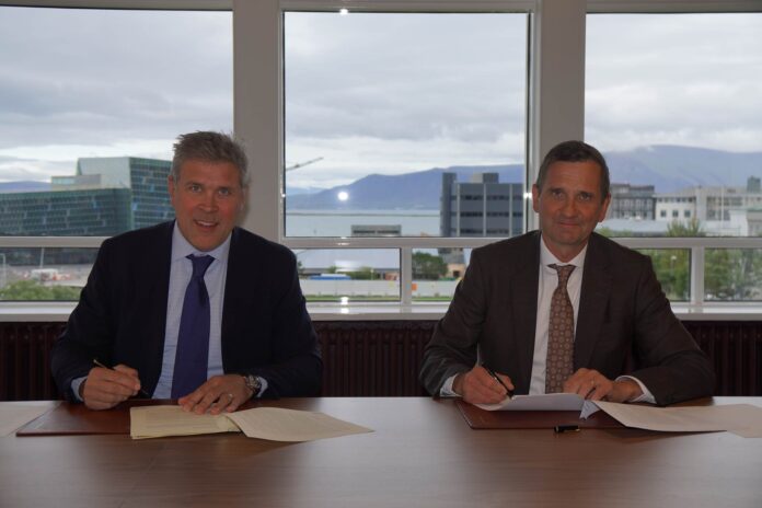 Bjarni Benediktsson forsætisráðherra og Hörður Arnarson, forstjóri Landsvirkjunar, undirrituðu samninginn og sagði forsætisráðherra fagnaðarefni að vindorkan verði þriðja stoðin í orkukerfi landsins.
