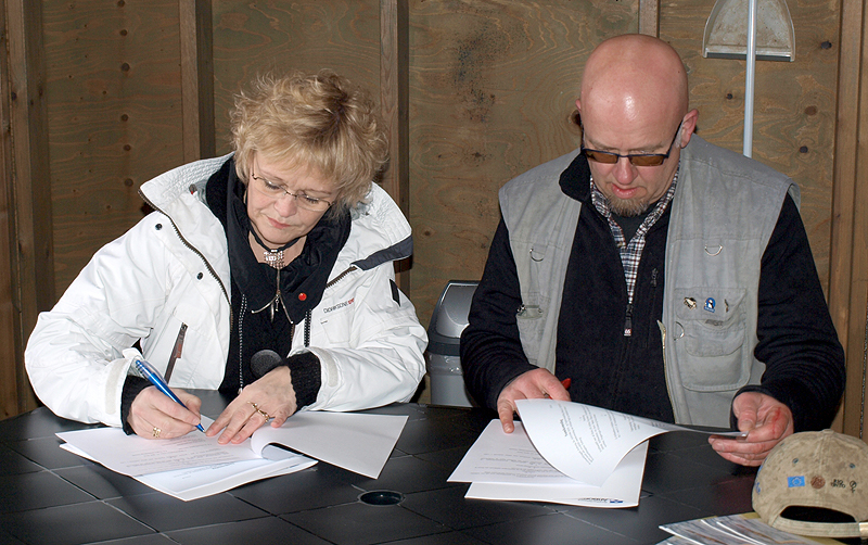 Ragnheiður Hergeirsdóttir bæjarstjóri og Jóhann Óli Hilmarsson, formaður Fuglaverndar, skrifaðu undir samninginn. Samningur um samstarf í Fuglafriðlandi var fyrst undirritaður á Eyrarbakka 1997.