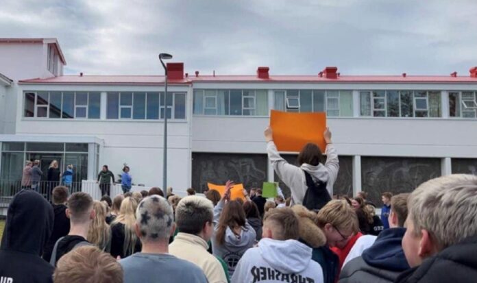 Nemendur í MH gengu út á sama tíma til þess að mótmæla aðgerðarleysi skólastjórnenda vegna kynferðisbrotamála sem komið hafa upp innan veggja skólans.