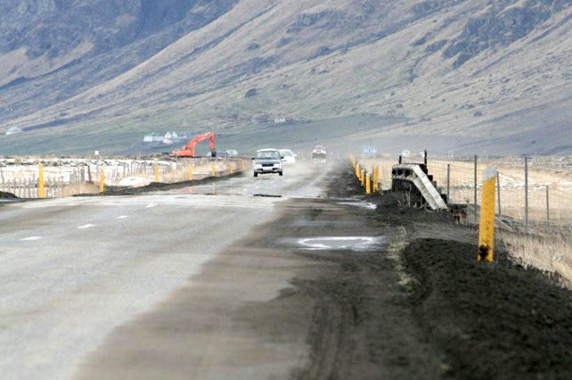 Sandrok er undir Eyjafjöllum og á Mýrdalssandi að sögn Vegagerðarinnar, en aðrir vegir á Suðurlandi eru greiðfærir. Herjólfur siglir til Þorlákshafnar í dag.