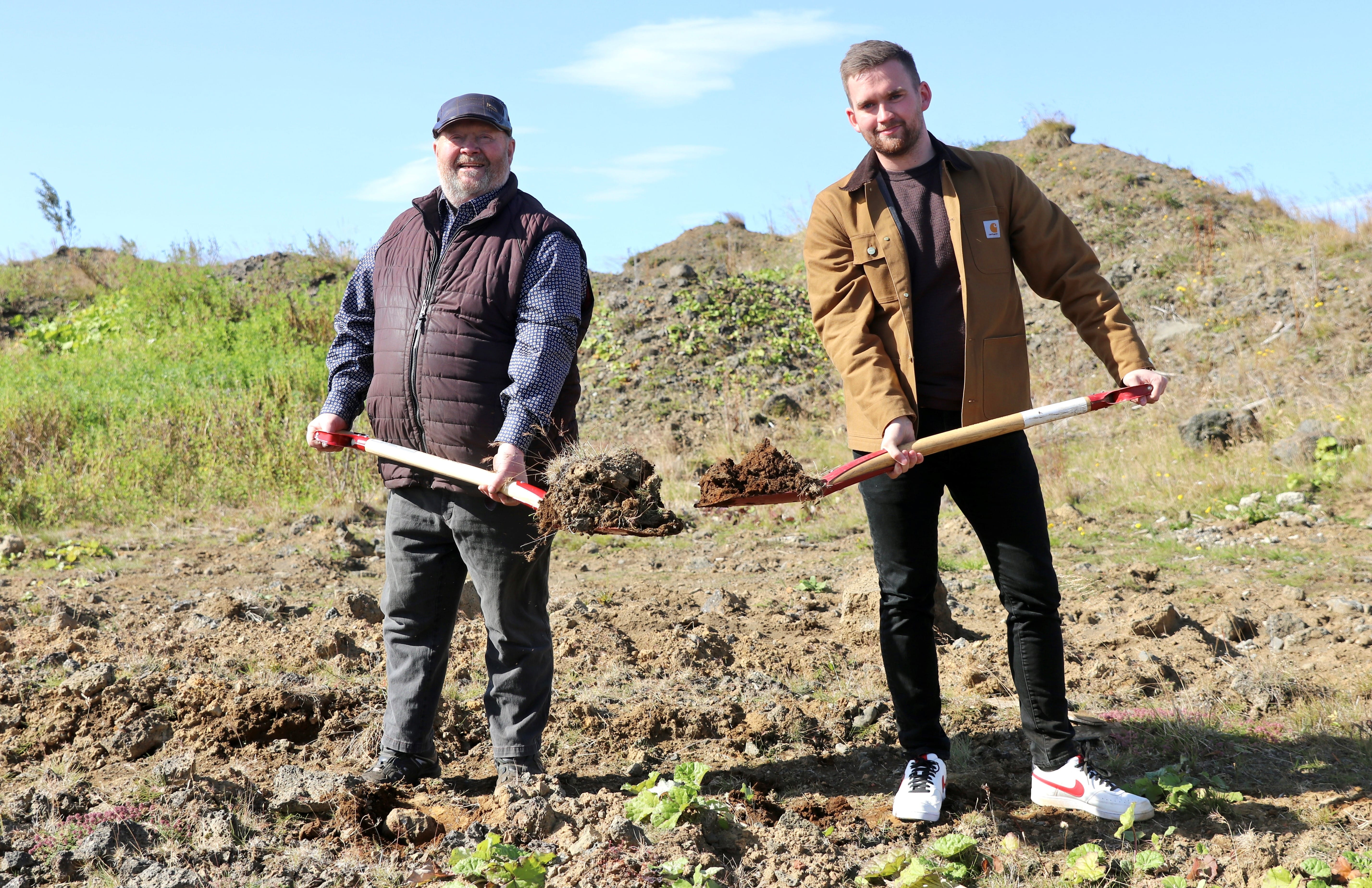 „Þetta er tímamótaskóflustunga. Þetta hefur tekið langan tíma, en nú er umhverfismati lokið og hægt að hefja hér vinnu. Margir hafa komið að verkefninu, bæði starfsmenn sveitarfélagsins, verkfræðingar og fjölmargir kjörnir fulltruar sem ég vil þakka fyrir þeirra vinnu. Það er mér ánægjulegt að fá Gunnar Egilsson, fyrrum formann framkvæmda- og veitunefndar með mér að taka skóflustunguna en hann risastóran þátt í þessu verkefni,“ sagði Sveinn Ægir Birgisson, formaður eigna- og veitunefndar Árborgar, áður en hann og Gunnar tóku skóflustunguna.