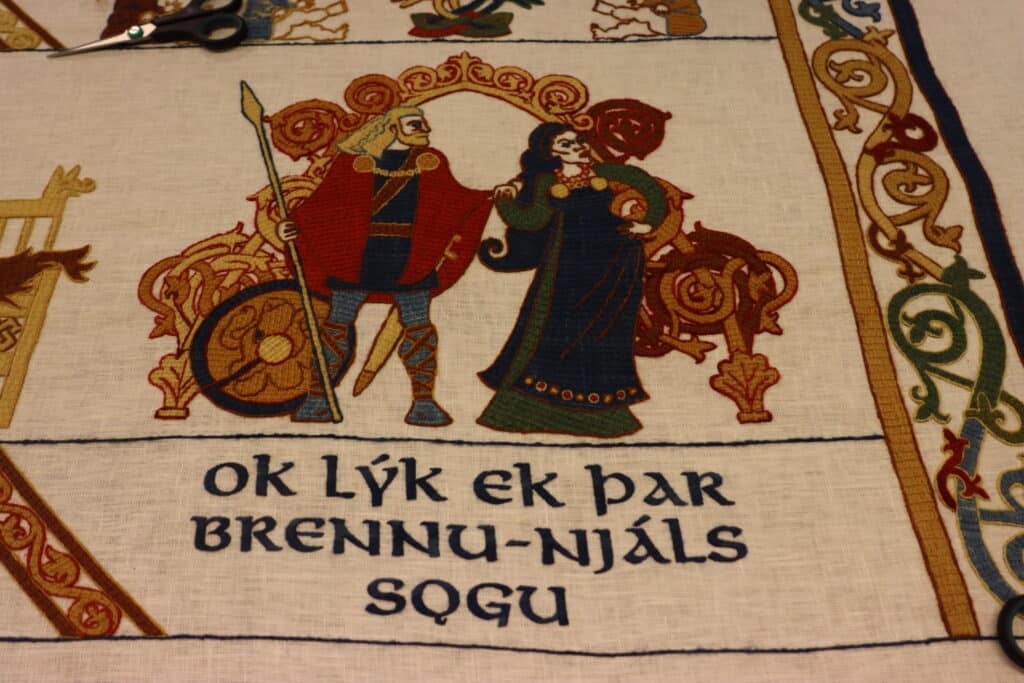Það var ekki laust við að það sæjust tár í augum nokkurra viðstaddra í Refilstofunni í síðustu viku en þá var síðasta saumsporið tekið í Njálurefilinn og reflinum síðan rúllað upp.