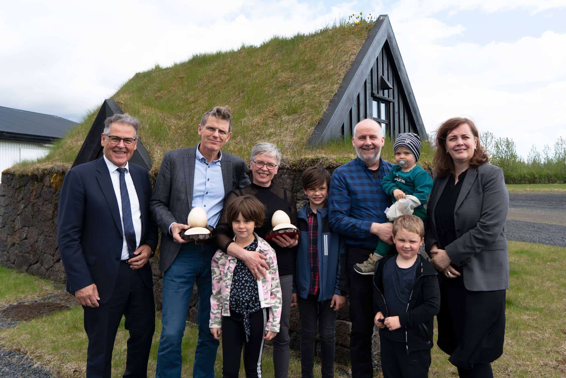 Matvælaráðherra afhenti verðlaunahöfum Fjöregg Landgræðslunnar, verðlaunagripi sem unnir eru úr tré í Eik-listiðju á Miðhúsum við Egilsstaði.
