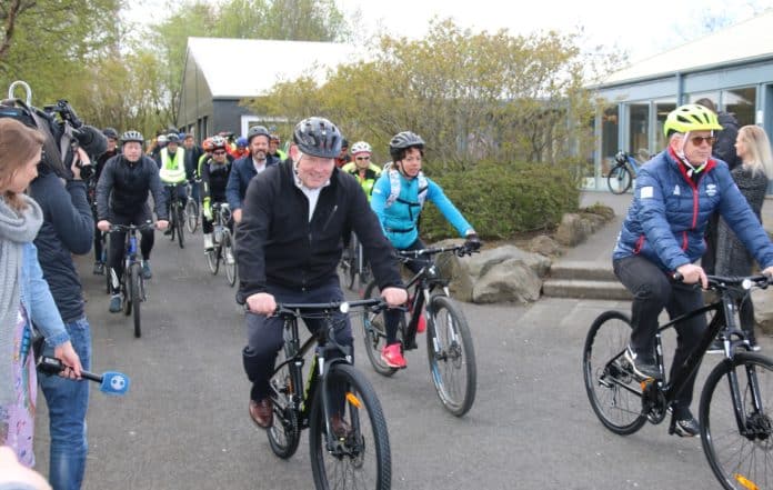 Að ávörpunum loknum hjóluðu gestir og þátttakendur átakið formlega af stað.