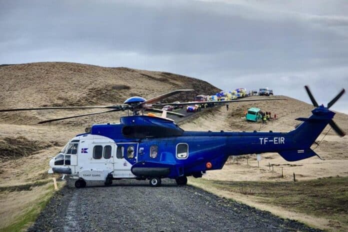 Í rútunni voru 26 farþegar, auk ökumanns, en bíllinn valt útaf veginum. Aðrir slasaðir fluttir á Landspítalann, heilsugæsluna á Hellu og Heilbrigðisstofnun Suðurlands á Selfossi til aðhlynningar.