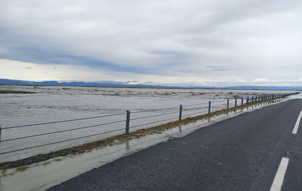 Suðurlandsvegur er lokaður austan við Vík vegna jökulhlaups í ánni Skálm í Álftaveri. Mikið vatn flæðir yfir veginn og er mikið álag á brúnni yfir Skálm.