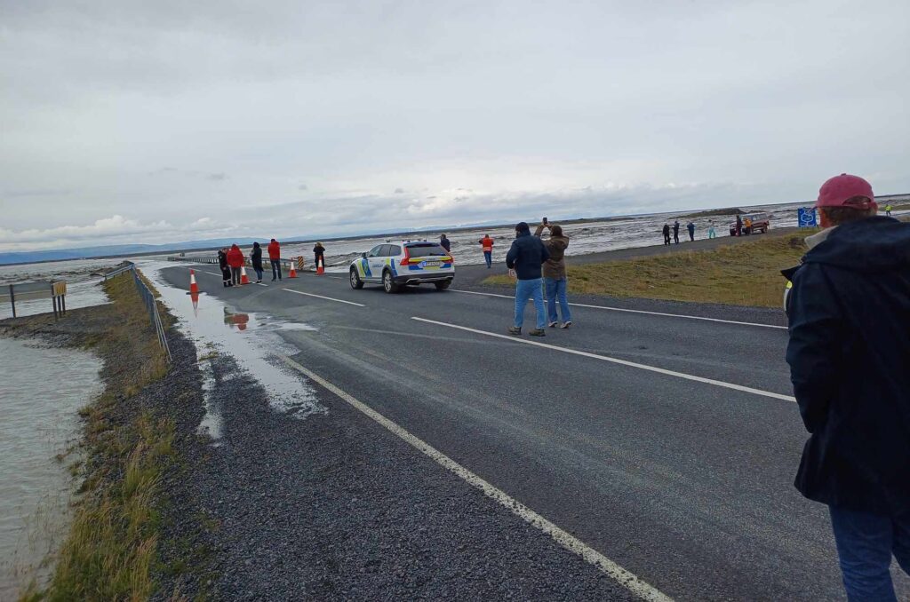 Töluverður fjöldi fólks er á svæðinu að sögn Marinó Fannars Garðarssonar, tíðindamanns sunnlenska.is á svæðinu en lögreglan er á staðnum og hefur lokað veginum á milli Víkur og afleggjarans niður í Álftaver. Starfsmenn Vegagerðarinnar eru vestan við brúna og fylgjast með því hvernig hlaupinu vindur fram. Marinó telur að nú um klukkan tvö hafi aðeins lækkað í ánni aftur, það sé hætt að flæða yfir brúna en það flæði yfir vegin á um 500 m kafla austan við hana.