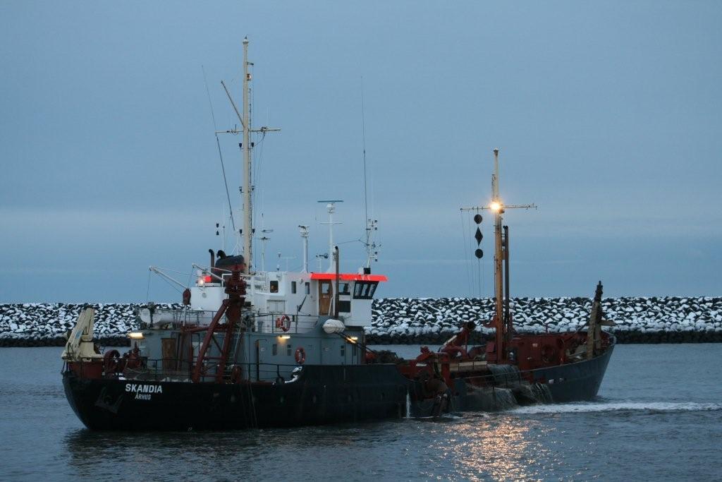 Skandia var nýbúið að fylla sig af sandi þegar skipið festist. Skipstjórinn þorði ekki að beita skrúfu skipsins vegna þess hvað skipið var nálægt grjótgarðinum.