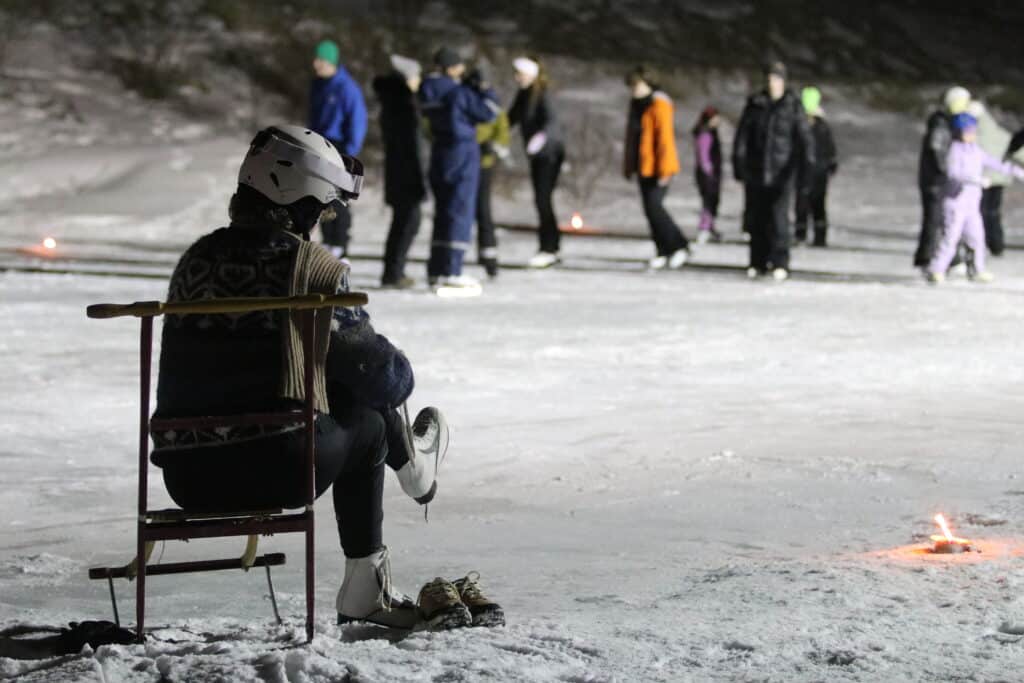 Svellið hefur verið mikið notað í vetur og nýjar og gamlar kempur hafa brýnt skautana og sýnt frábær tilþrif. Raunar hefur áhuginn verið svo mikill að stofnað hefur verið félag í hreppnum, Skautafélagið Dettinn.