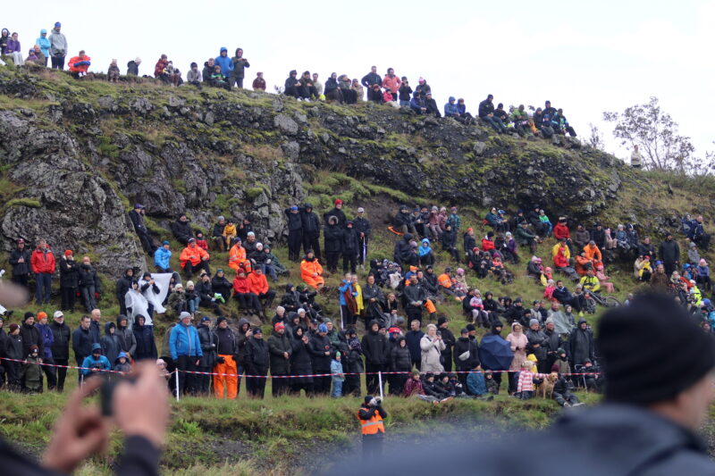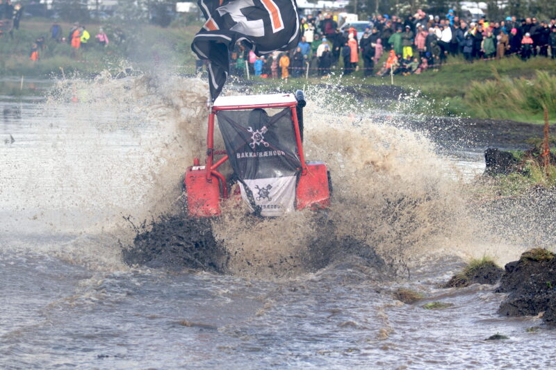 Þrátt fyrir rigninguna létu áhorfendur ekkert stöðva sig og fjölmenntu á keppnina sem var hin besta skemmtun. Ekki síst vegna framgöngu Bessa Theodórssonar, sem kynnti keppnina með miklum tilþrifum.