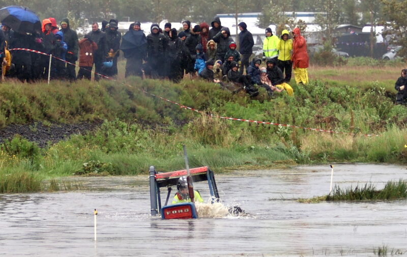 Átta öflugar dráttarvélar voru skráðar til leiks og náðu þær misgóðum árangri í vatninu. Tobias Ölvisson frá Grafarbakka fór með sigur af hólmi og Óskar Ingvi Sigurðsson fékk tilþrifaverðlaunin, sem kallast nú Víglundarbikarinn til minningar um Víglund Þorsteinsson frá Haukholtum.