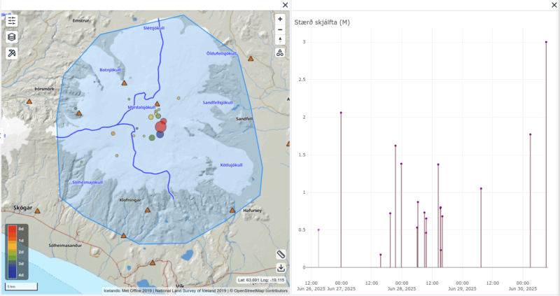 Um klukkan 9:15 í morgun varð skjálfti af stærðinni 3,0 í Mýrdalsjökli, engir eftirskjálftar hafa fylgt en síðustu daga hefur nokkur virkni mælst í jöklinum.