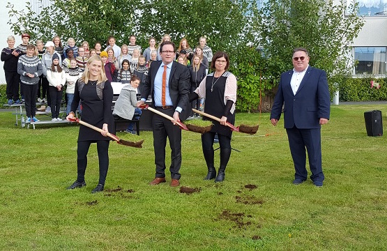 Það voru þau Kristján Þór Júlíusson, heilbrigðisráðherra, Ólöf Guðbjörg Eggertsdóttir, hjúkrunarforstjóri á Kirkjuhvoli og Lilja Einarsdóttir, oddviti sveitarfélagsins, sem tóku skóflustunguna.
