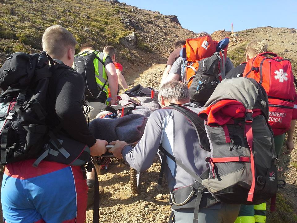 Konan var á göngu, skipulagðri af íslensku ferðaþjónustufyrirtæki, þegar hún meiddist á fæti. Bera þurfti konuna um 1 km leið, víða nokkuð bratta og lausa í sér. Um tuttugu manns frá björgunarsveitum taka þátt í aðgerðinni.