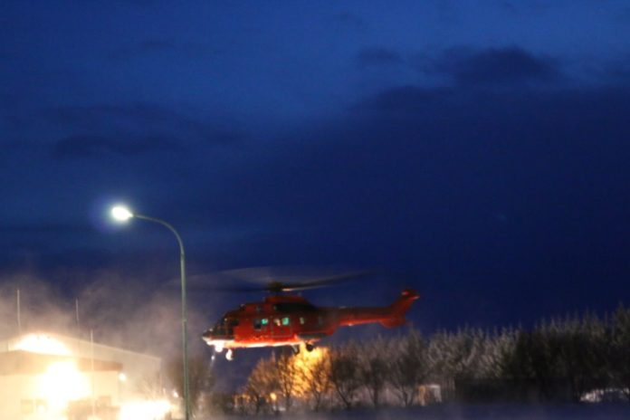 Þyrlan lenti svo við heilsugæsluna á Hvolsvelli og sótti stúlkuna um kl. 17. Hún lenti síðan við Landspítalanum í Fossvogi um klukkan 18:45.
