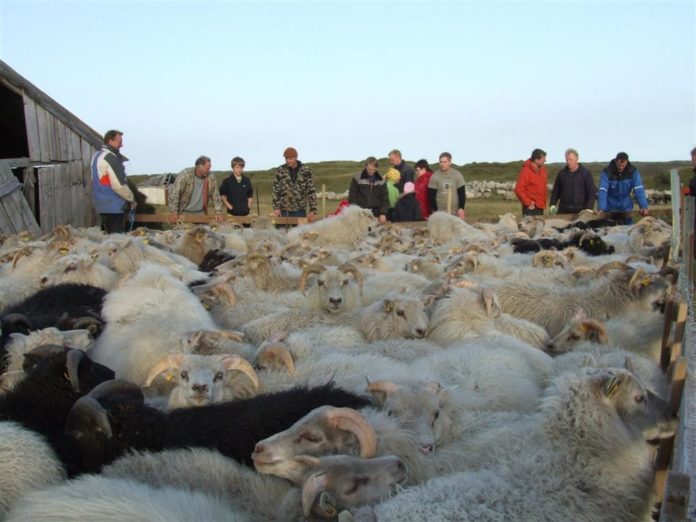 Þetta er annað árið sem Sólheimabændur þurfa að flytja fé sitt austur í Leiðvöll vegna ösku í Sólheimaheiðum og uppgræðslu á Sólheimasandi sem Landgræðslan sér um.