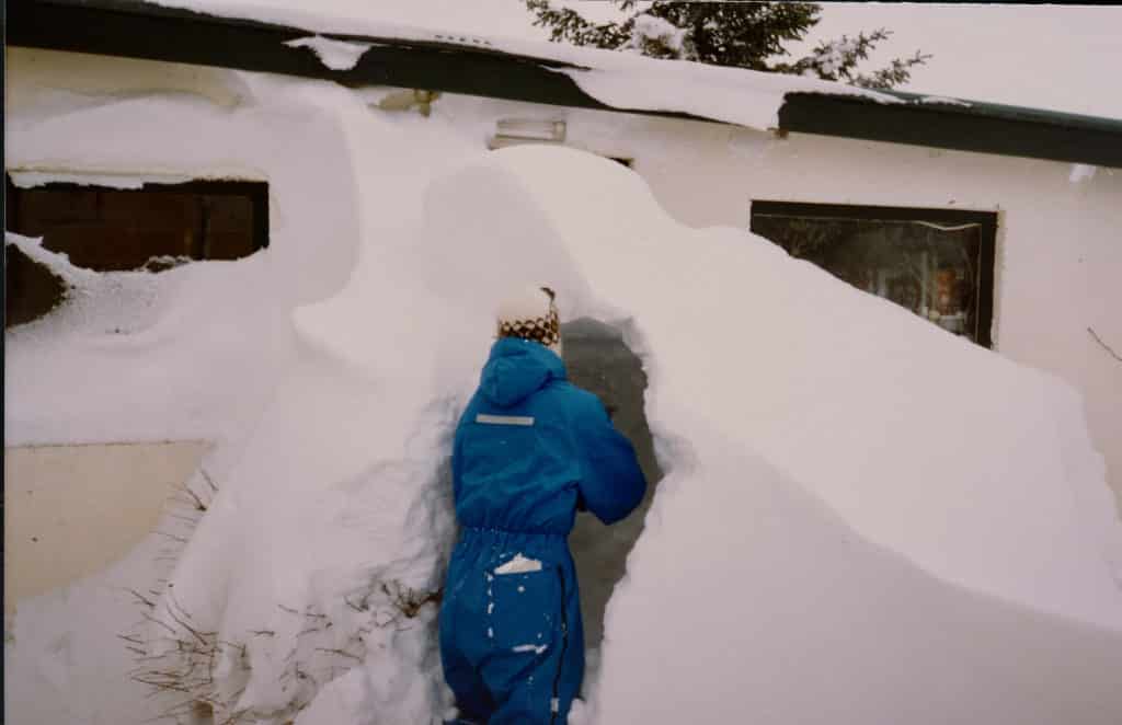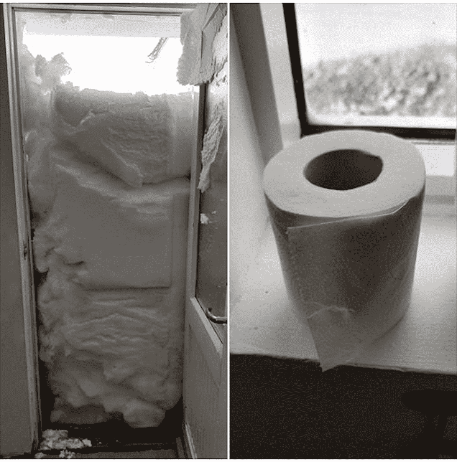 Berglind Kristinsdóttir í Gerðakoti í Ölfusi vaknaði all hressilega þegar hún opnaði útihurðina að heimilinu sínu í morgun. Stærðarinnar skafl var fyrir hurðinni sem það sem verra er að fjölskyldan á bara eina klósettrúllu eftir.