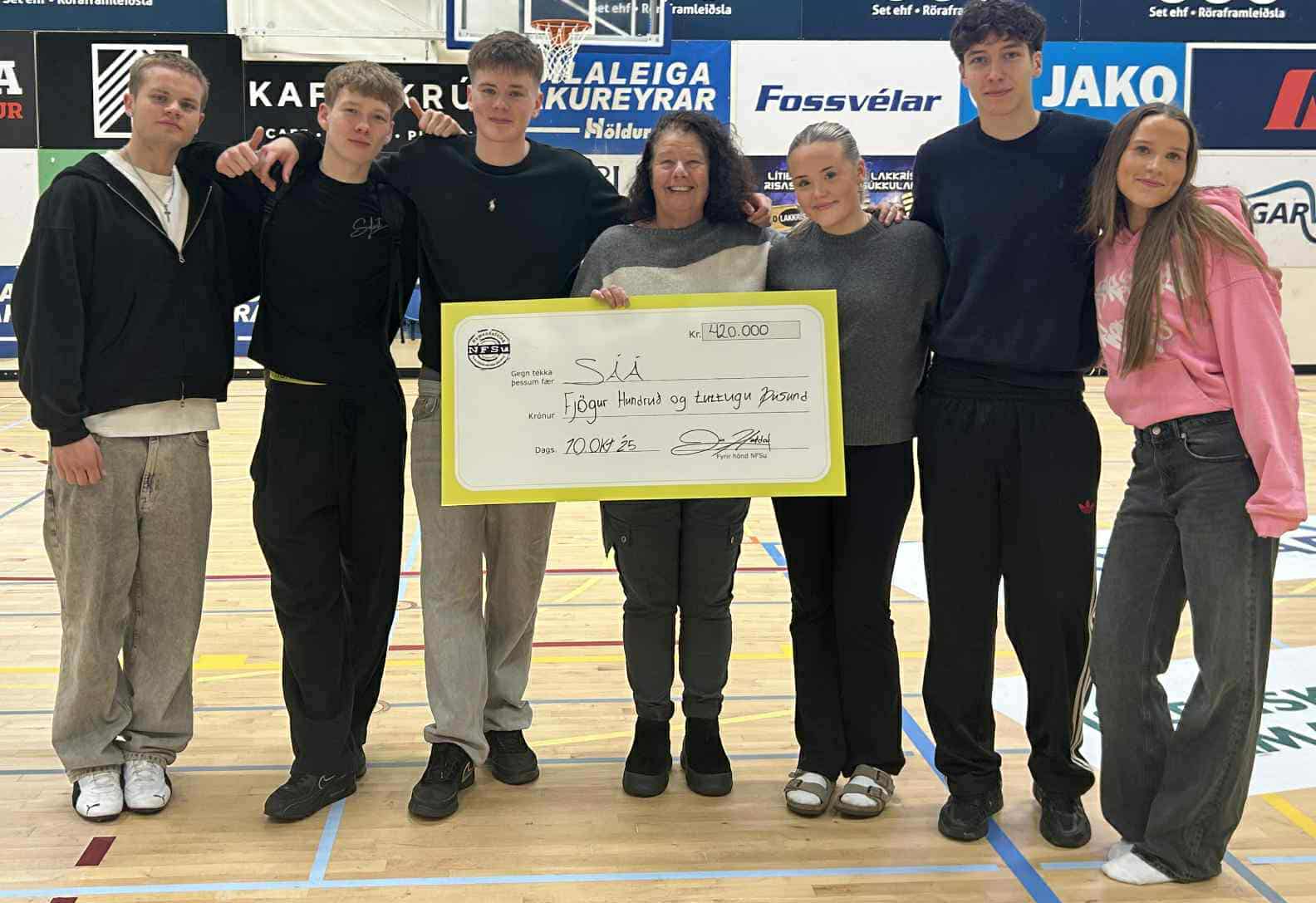 Alls söfnuðust 420 þúsund krónur til styrktar SÁÁ á góðgerðarviku Nemendafélags Fjölbrautaskóla Suðurlands sem fram fór í síðustu viku.