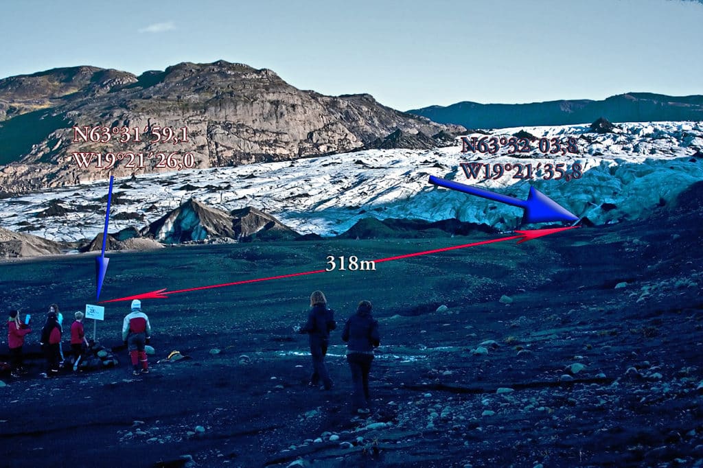Mælingar milli ára geta verið mjög mismunandi og fara að mestu leyti eftir því hve mikið hefur brotnað framan af jökulsporðinum og fallið út í lónið framan við hann. Á þessum 10 árum sem mælingar hafa staðið yfir hefur sporður Sólheimajökuls hopað að meðaltali um tæpa 40 m á ári. Núna er sporðurinn mjög sprunginn og má búast við að á næstunni muni stór stykki falla eða slitna frá honum.