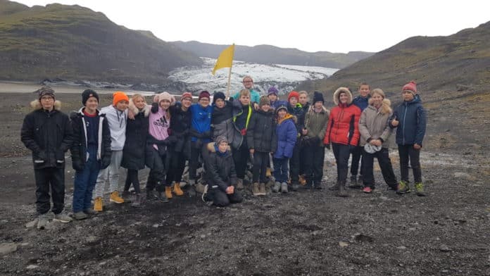 Nemendur 7. bekkjar Hvolsskóla fóru ásamt Jóni Stefánssyni verkefnastjóra Grænfánans og fylgdarliði að Sólheimajökli í byrjun vikunnar.