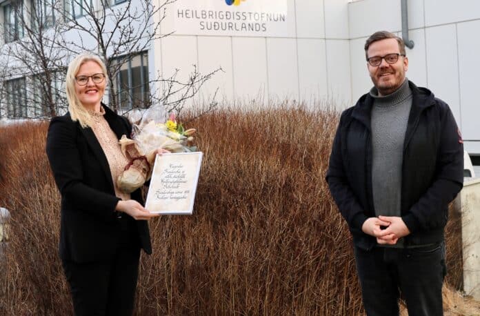 Viðurkenningin var veitt í dag en fyrir hönd starfsmanna HSU var það Ólöf Árnadóttir, hjúkrunardeildarstjóri á Selfossi, sem tók við viðurkenningunni úr hendi Guðmundar Karls Sigurdórssonar, ritstjóra sunnlenska.is.