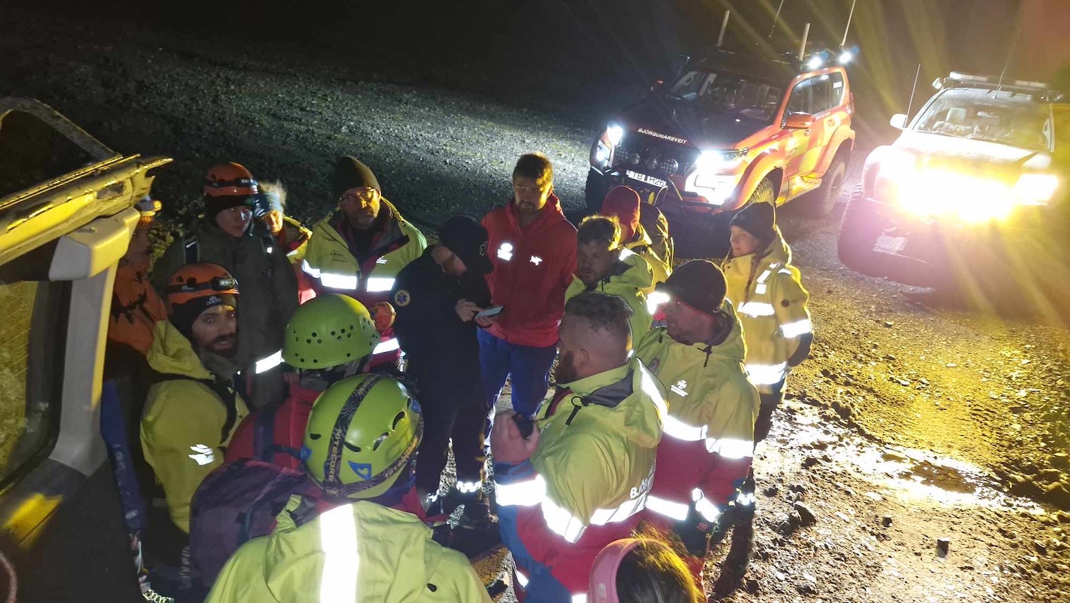 Neyðarlínunni bárust neyðarboð kl. 22:18 í gærkvöldi þess efnis að tveir aðilar væru innlyksa í helli á svæðinu. Umfangsmikil leit stóð yfir í alla nótt og fram eftir degi í dag.