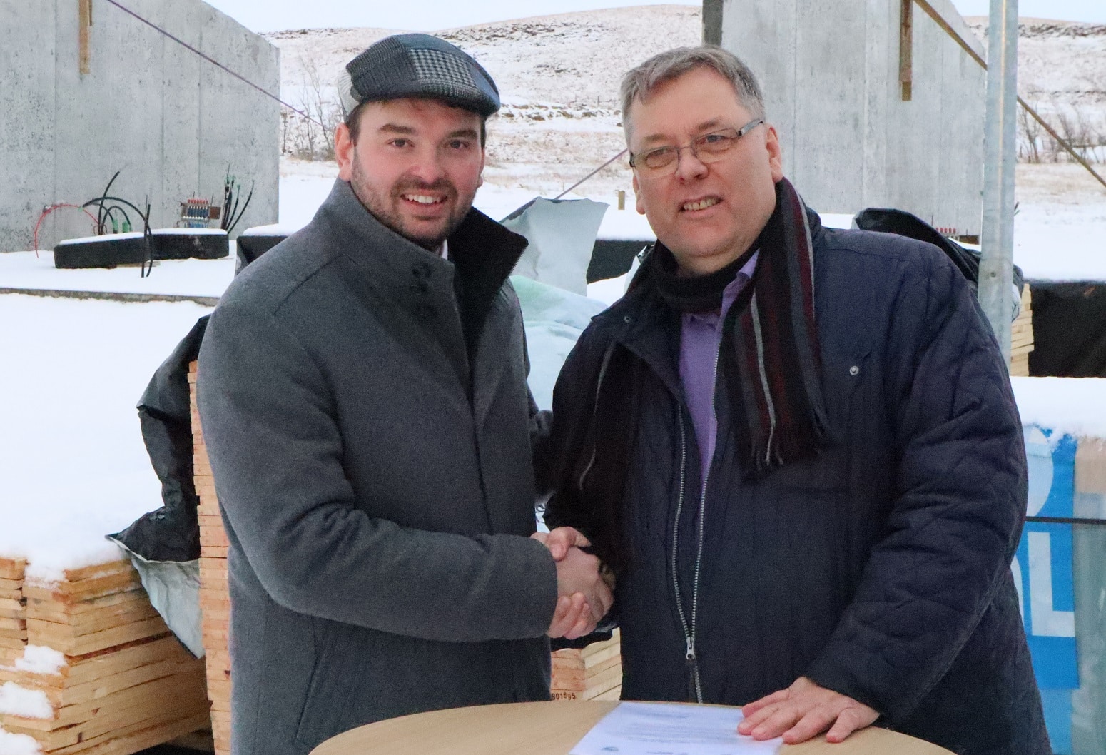 Ásmundur Einar Daðason, félags- og barnamálaráðherra, og Kristófer Tómasson, sveitarstjóri Skeiða- og Gnúpverjahrepps, undirrituðu í gær viljayfirlýsingu um aðkomu stjórnvalda að húsnæðisuppbyggingu í Árnesi.