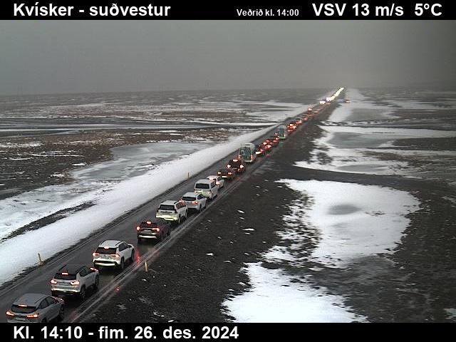 Suðurlandsvegur er lokaður skammt frá Kvískerjum í Öræfum eftir harðan árekstur tveggja bifreiða rétt fyrir klukkan 13 í dag.