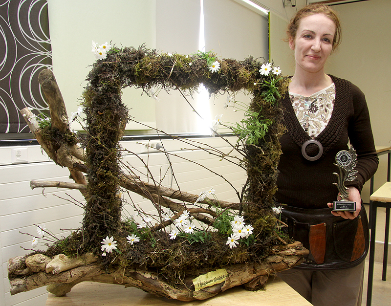 Íslandsmeistari í blómaskreytingum varð Jón Þröstur Ólafsson, blómaskreytingameistari í Blómaval í Skútuvogi.