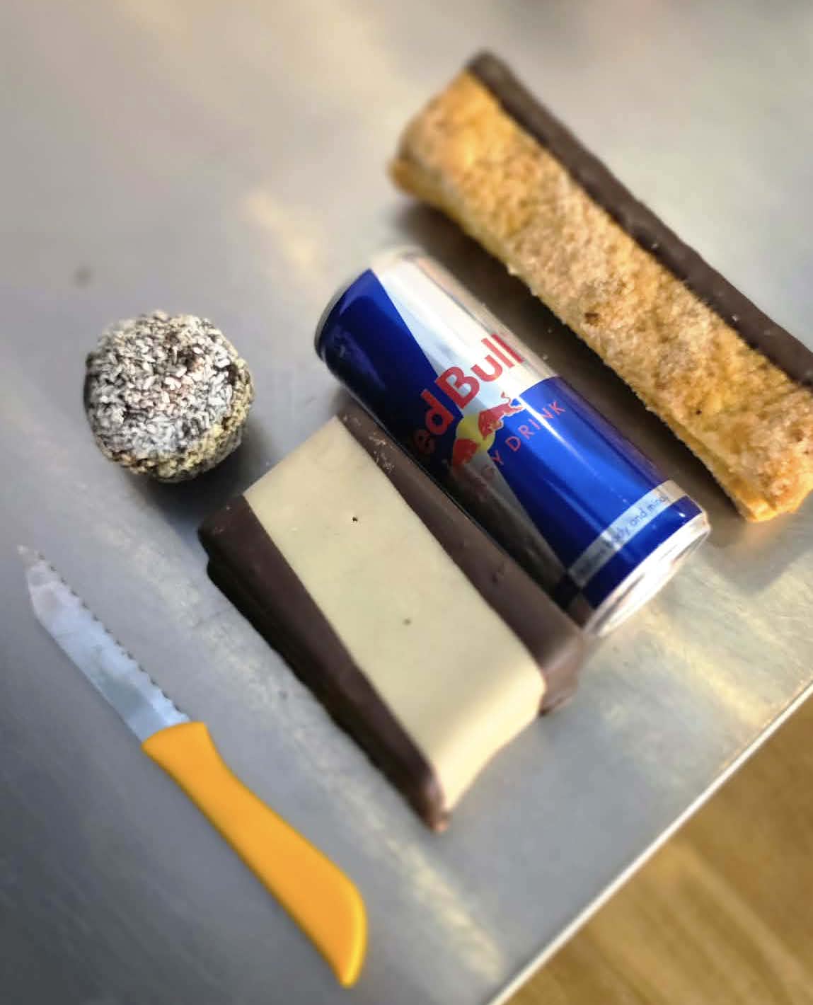 Brotist var inn í Almars bakarí í Hveragerði í nótt. Þjófurinn hafði á brott með sér marsipanstykki, franska vöfflu, kókoskúlu og Red Bull – allt það heitasta úr orkupakkanum. Að auki stal hann litlum hníf.