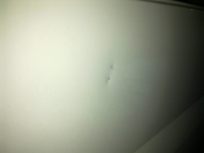 Skemmdarvargurinn var í hópi nokkurra stuðningsmanna á leið úr íþróttamiðstöðinni eftir leikinn þegar hann tók upp grjót og henti í hliðina á nýlegum sendibíl sem stóð við heimahús.