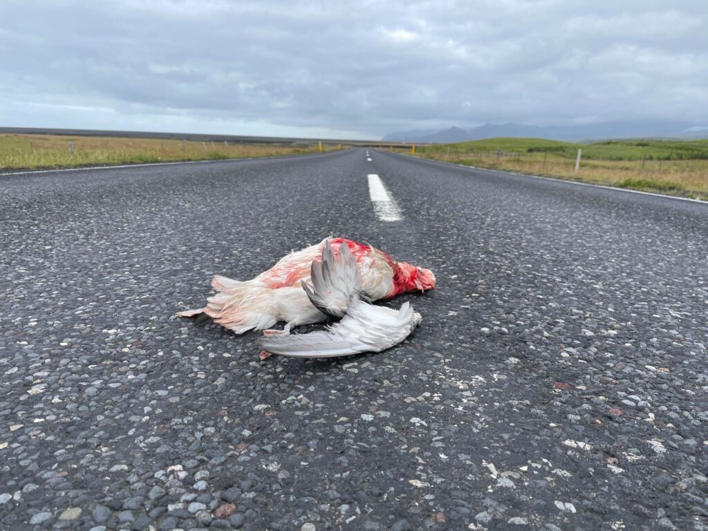 „Ungfuglinn er jafnstór fullvaxta fugli og því vel sýnilegur. Margir ökumenn aka á fuglana þar sem þeir liggja á veginum og í vegköntum og starfsmenn Vegagerðarinnar hafa ekki undan að hreinsa veginn af sundurtrættum fuglsungum. Hugsanlega halda einhverjir ökumenn að þarna séu á ferðinni fullvaxta fuglar sem búið sé að aka yfir og skeyta því ekki um það. Einnig eru ungarnir inni í þorpinu í Vík, þar sem þeir stranda í heimagörðum og á götum úti,“ segir Ragnheiður og bætir við að það sé mjög auðvelt að bjarga fýlsungum úr sjálfheldu og koma þeim í lygnar ár eða ósa í nágrenni Víkur.