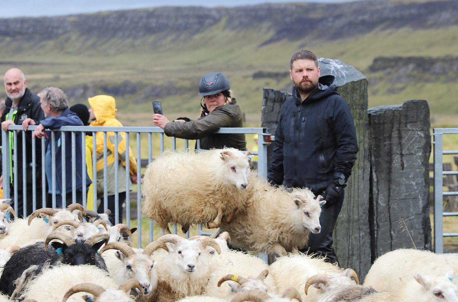 „Það fóru 3.700 hausar á fjall og við vonumst til að það séu góðar heimtur hér í dag þó að ég viti það ekki ennþá. Það kemur í ljós eftir daginn í dag þegar menn eru farnir að telja í dilkunum. En féð lítur vel út, ég hugsa að það sé að meðaltali nokkuð gott. Það er gott átak í lömbunum,“ sagði Jón ennfremur og bætti við að það sé gaman að koma í réttirnar aftur þar sem gestir séu leyfðir.