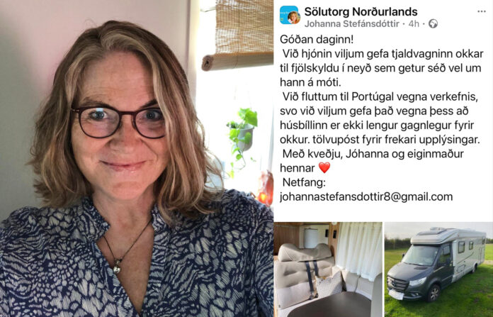 Svikahrappur á Facebook hefur notað mynd af Jóhönnu og nafnið hennar og deilt innleggi í hinum ýmsu hópum á Facebook þar sem tjaldvagn er auglýstur gefins.